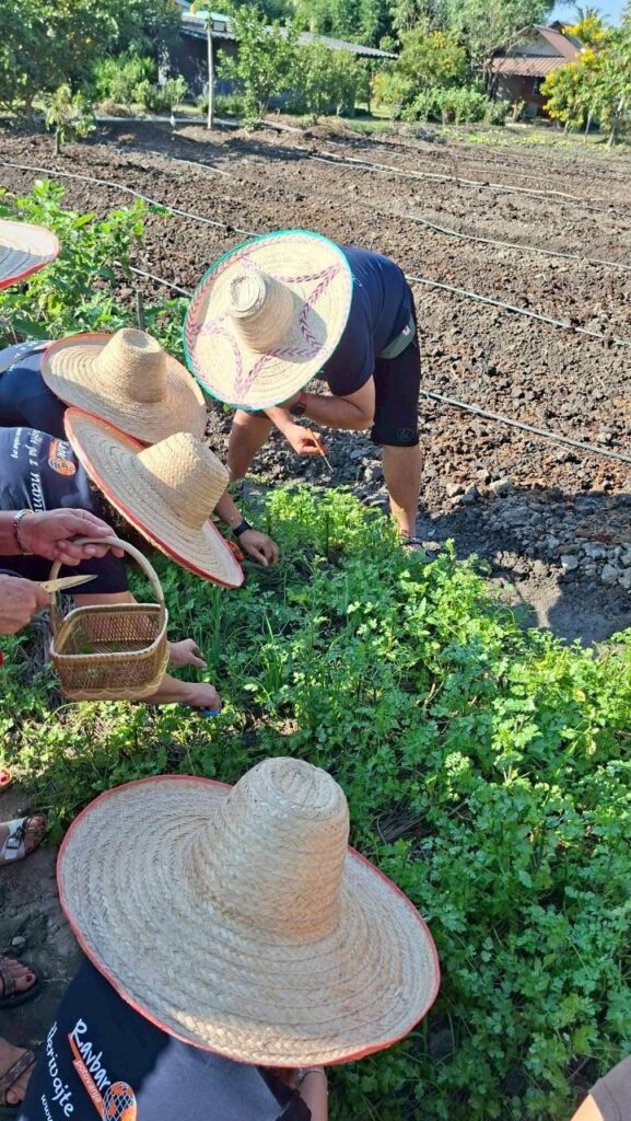 Baan Farm Thai Cook Schoolには自家農園があります。料理に使う新鮮な野菜やハーブを、自分の手で摘み取る体験ができます。