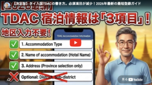ビザ取得サポート よかったらシェアしてね! URLをコピーしました! URLをコピーしました! タイ入国カード TDACの書き方 この記事を書いた人 godkie 関連記事 タイ入国カード TDACの書き方 2026年4月1日 タイ・リタイアメントビザ完全ガイド | チェンマイでセカンドライフを始めませんか? 2026年2月1日 タイ入国に関する変更等(ビザなし滞在日数延長) 2024年7月17日 チェンマイでのイミグレーション手続きについて 2024年4月3日 【2024年2月1日〜】EDビザ変更業務に関する更新のお知らせ 2024年2月1日 タイビザ取得までの流れ 2023年9月10日